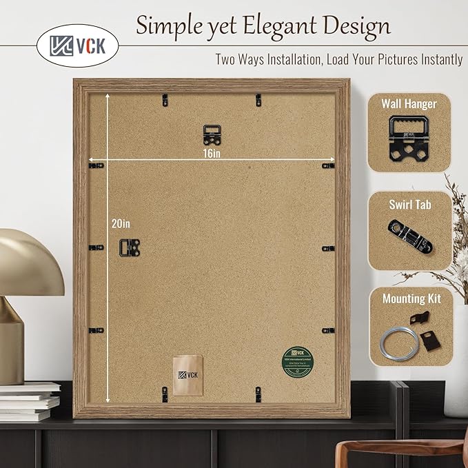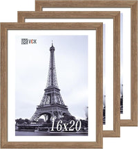 VCK 16x20 Picture Frames for Wall 3 Pack, Brown Walnut Wood Poster Frame, Exclusive Wood Grain, Wall Mounting Hanging