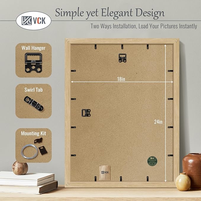 VCK 18x24 Oak Wood Frame for Poster & Picture, Natural Solid Wood Photo Frames 3 Pack, Wall Mounting Hanging