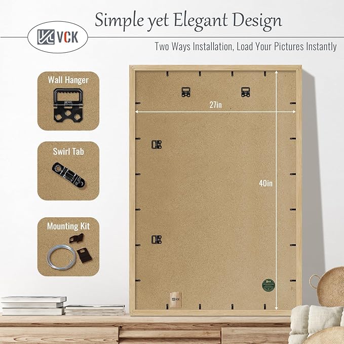 VCK 27x40 Oak Poster Frame 3 Pack, Natural Solid Wood Picture Frames, Wall Gallery Frame
