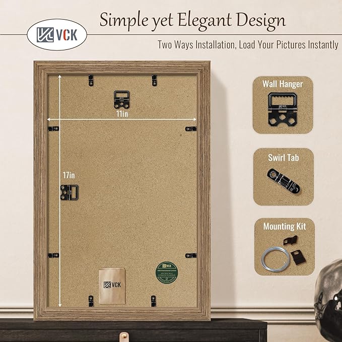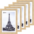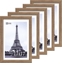 VCK 11x17 Picture Frame Set of 5 - Brown Walnut, Natural Textured Solid Wood Picture Poster Frame, Wall Gallery Frame