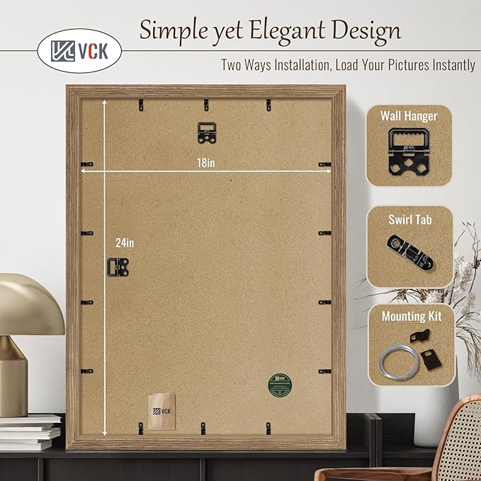 VCK 18x24 Poster Frame 5 Pack, Brown Walnut Wood Picture Frame, Exclusive Wood Grain, Wall Mounting Hanging