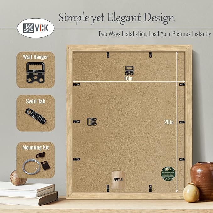VCK 16x20 Poster Frame 5 Pack - Oak, Natural Solid Wood Picture Frames for Wall, Wall Gallery Frame