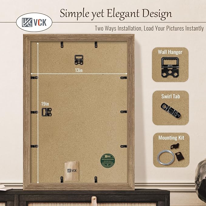 VCK 13x19 Picture Frame 5 Pack - Brown Walnut, Natural Textured Solid Wood Frame, Wall Gallery Frame