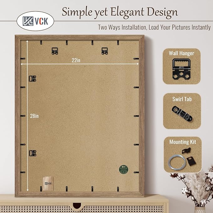 VCK 22x28 Frame 5 Pack - Brown Walnut, Natural Textured Solid Wood Poster Picture Frame, Wall Mounting Hanging