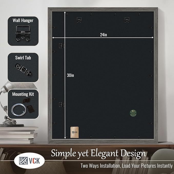 VCK 24x30 Frame Set of 5, Gray Solid Wood Poster Picture Frame, Exclusive Wood Grain, Wall Mounting Hanging