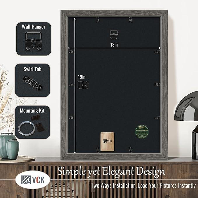 VCK 13x19 Picture Frame Set of 5, Gray Solid Wood Poster Picture Frame, Exclusive Wood Grain, Wall Mounting Hanging