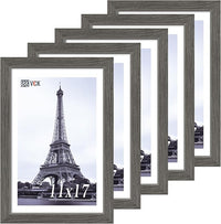 VCK 11x17 Picture Frame 5 Pack, Gray Solid Wood Poster Picture Frame, Exclusive Wood Grain, Wall Mounting Hanging
