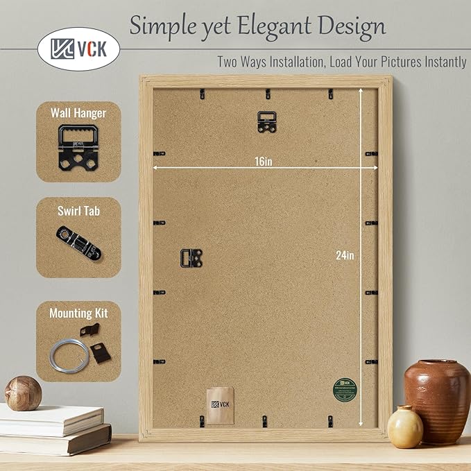 VCK 16x24 Oak Wood Frame for Poster & Picture, Natural Solid Wood Photo Frames 5 Pack, Wall Gallery Frame