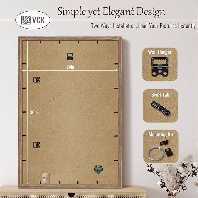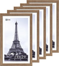 VCK 24x36 Poster Frame 5 Pack - Brown Walnut, Natural Textured Solid Wood Picture Frame, Wall Mounting Hanging