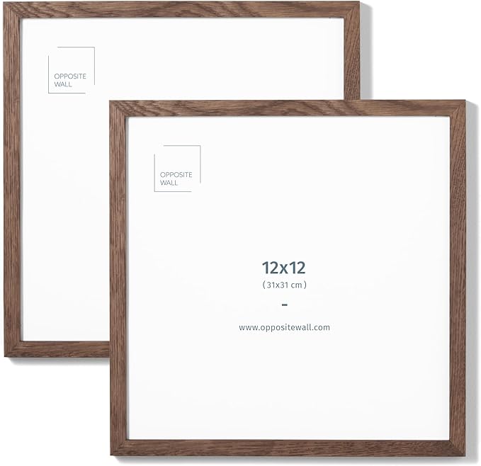 Opposite Wall - 12x12 in - Dark Solid Oak Wood Picture Frame - Lightweight, Versatile & Shatterproof - Wall Hanging Poster or Photo Frame - Wall Decor for Office, Gallery & Home - 2 Pack