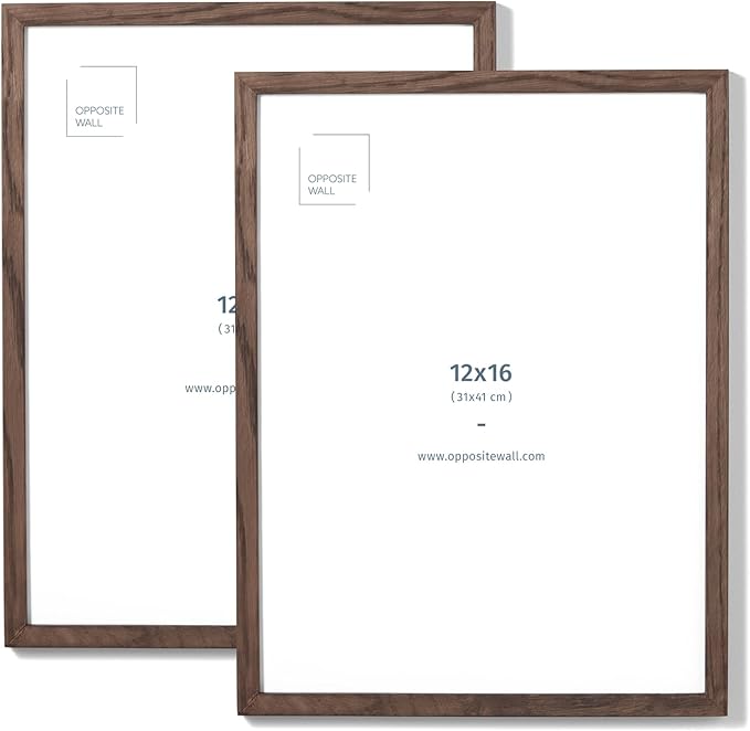 Opposite Wall - 12x16 in - Dark Solid Oak Wood Picture Frame - Lightweight, Versatile & Shatterproof - Wall Hanging Poster or Photo Frame - Wall Decor for Office, Gallery & Home - 2 Pack