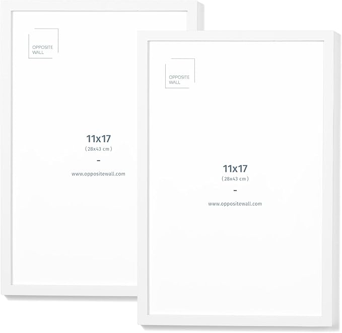 Opposite Wall - 11x17 in - White Solid Oak Wood Picture Frame - Lightweight, Versatile & Shatterproof - Wall Hanging Poster or Photo Frame - Wall Decor for Office, Gallery & Home - 2 Pack