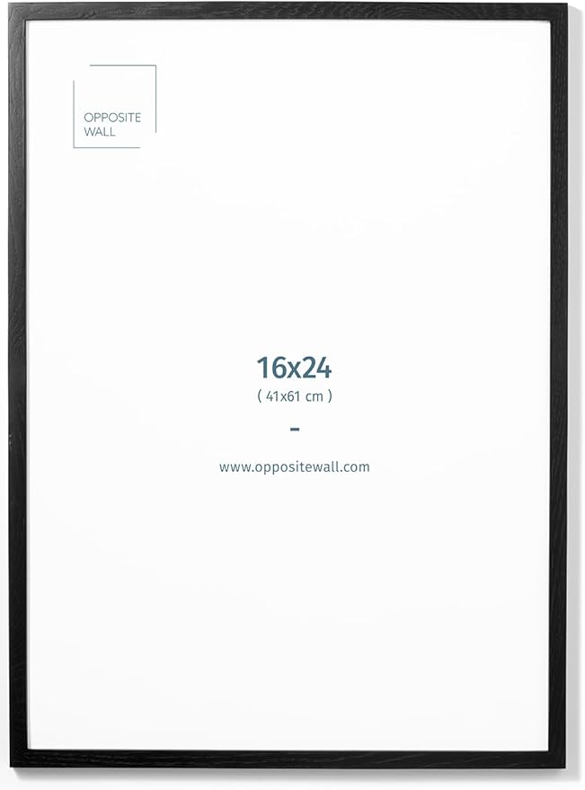 Opposite Wall - 16x24 in - Black Solid Oak Wood Picture Frame - Lightweight, Versatile & Shatterproof - Wall Hanging Poster or Photo Frame - Wall Decor for Office, Gallery & Home