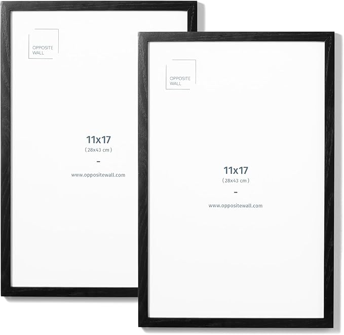 Opposite Wall - 11x17 in - Black Solid Oak Wood Picture Frame - Lightweight, Versatile & Shatterproof - Wall Hanging Poster or Photo Frame - Wall Decor for Office, Gallery & Home - 2 Pack