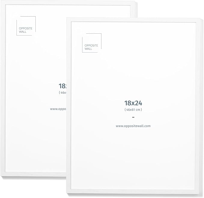 Opposite Wall - 18x24 in - White Solid Oak Wood Picture Frame - Lightweight, Versatile & Shatterproof - Wall Hanging Poster or Photo Frame - Wall Decor for Office, Gallery & Home - 2 Pack