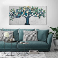 CHATYOUNG Wall Art Living Room - Large Teal Blue Tree of Life Abstract Landscape Painting Modern Print Artwork for Dining Room Bedroom Bathroom Office Home Decor 48"x24"