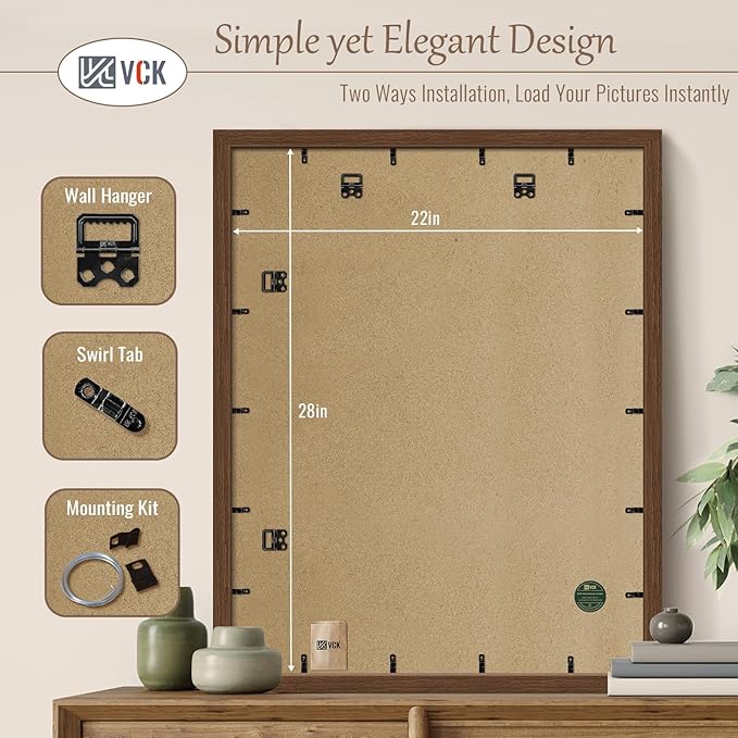 VCK 22x28 Picture Frame 5 Pack, Brown Wood Poster Frame with Exclusive Wood Grain, Wall Hanging