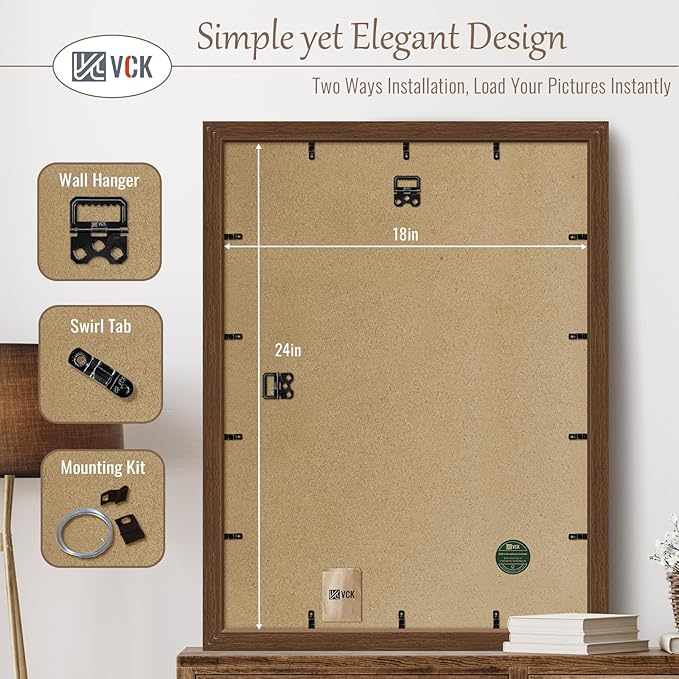 VCK 18x24 Poster Frame 5 Pack, Brown Wood Picture Frame with Exclusive Wood Grain, Wall Hanging