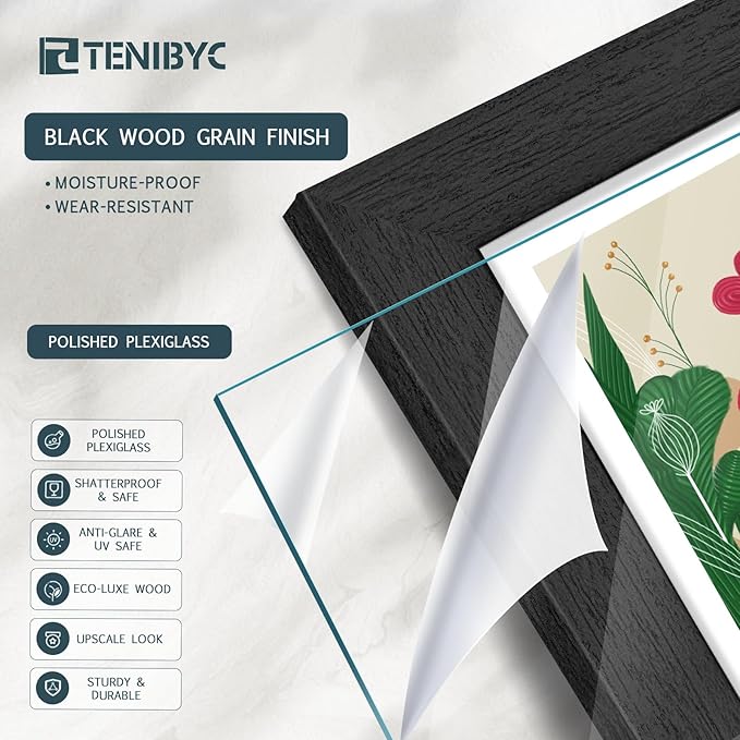 20x30 Poster Frame Set of 4, Textured Black Wood Picture Frame, Horizontal or Vertical Wall Hanging, Dissplay Photo, Poster, Map and Puzzle
