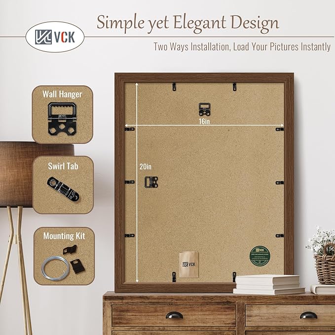 VCK 16x20 Picture Frames for Wall 3 Pack, Brown Wood Poster Frame with Exclusive Wood Grain, Wall Mounting Hanging
