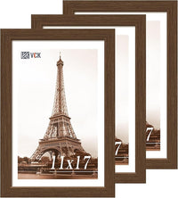 VCK 11x17 Picture Frame 3 Pack, Brown Wood Poster Frame with Exclusive Wood Grain, Wall Mounting Hanging