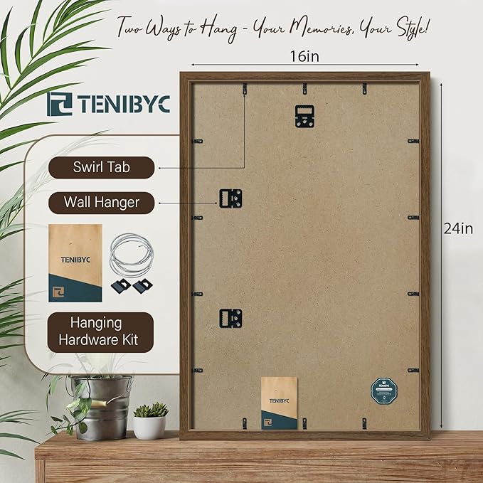 16x24 Poster Frame 3 Pack - Brown Woodgrain, Wood Poster Frame, Gallery Picture Frame - Wall Hanging