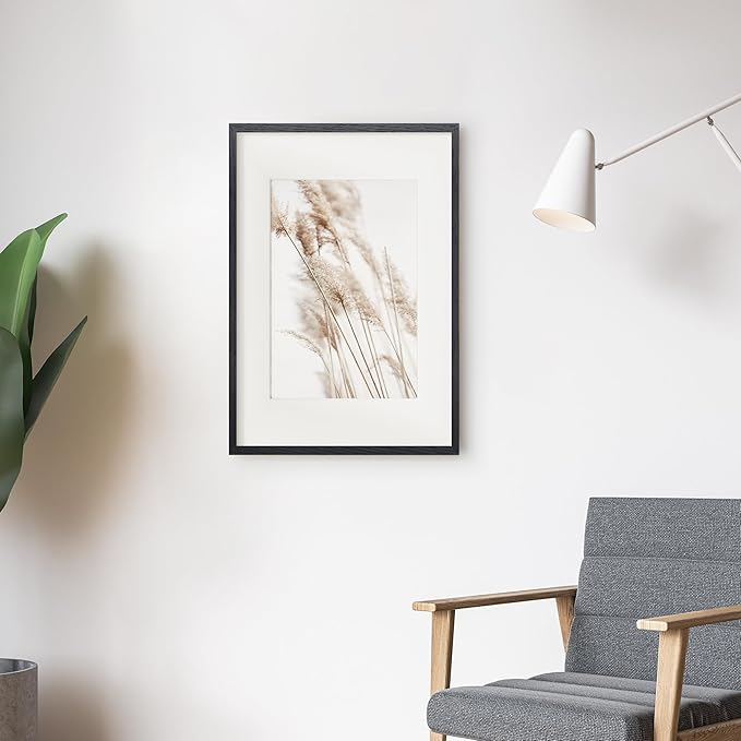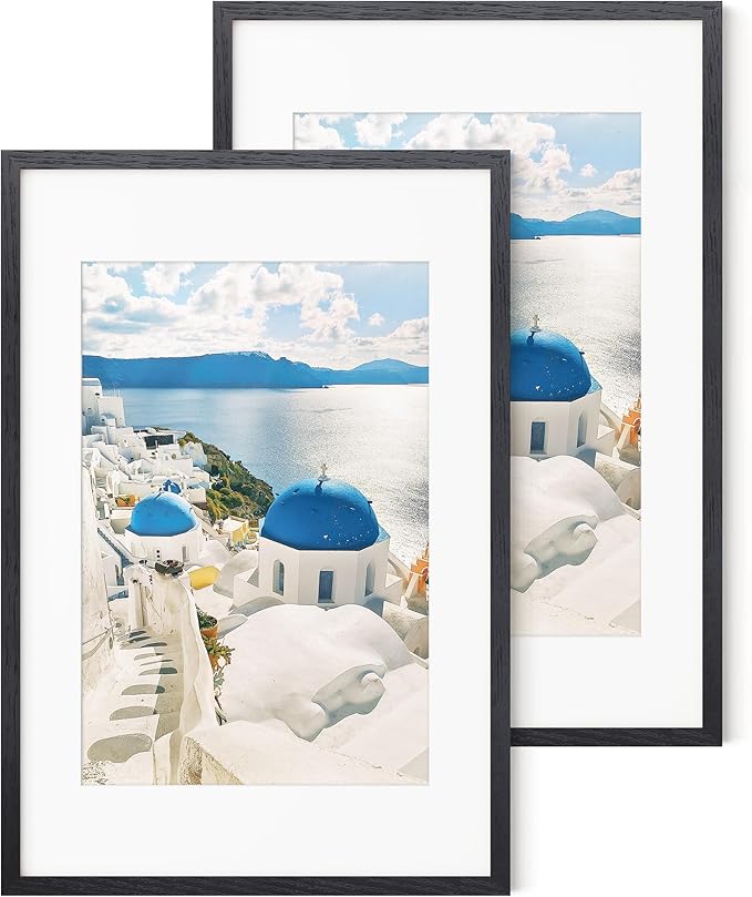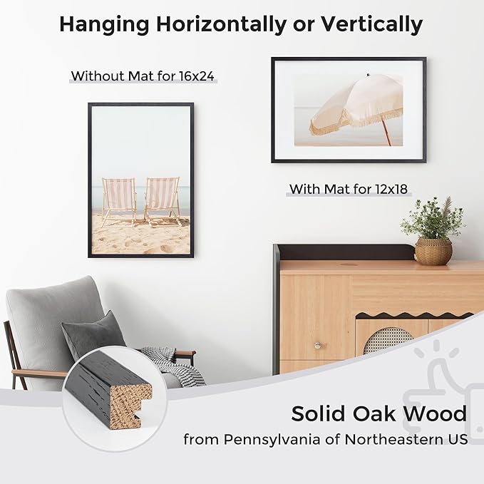 Axeman 16x24 Frame With Mat for 12x18, Solid Oak Wood Poster Frame With Tempered Glass, Picture Frame for Wall, Home Decor, Hanging Hardware Included, 2 PCs, Black