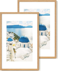 Axeman 16x24 Frame With Mat for 12x18, Solid Oak Wood 16x24 Poster Frame With Tempered Glass, 16 x 24 Picture Frame for Wall, 16 by 24 Wood Frame Home Decor, Hanging Hardware included, 2 PCs, Natural