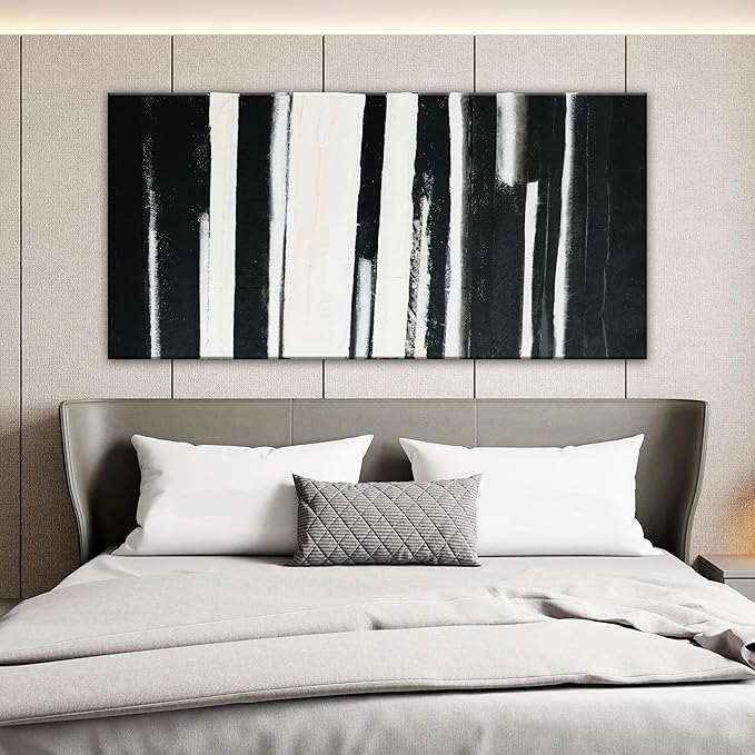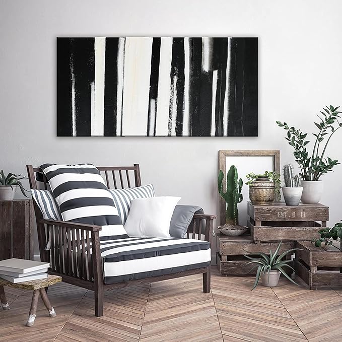 QSQ Abstract Wall Art Decor Modern paintings Wall Decor Wall Art Canvas Prints Black and White Minimalist Stripes Artwork for Living Room Wall Bedroom Kitchen Decor 24"×48"