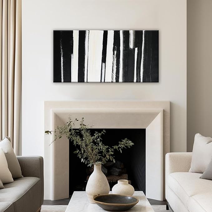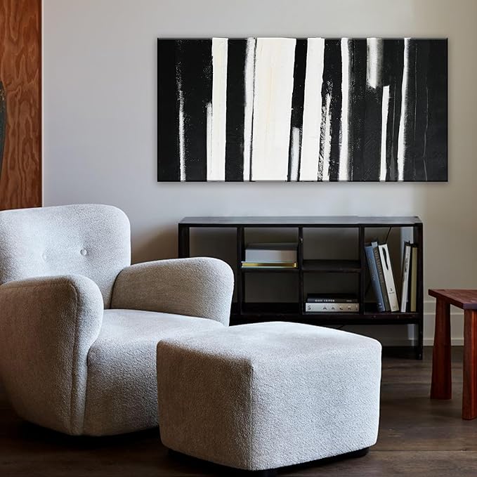 QSQ Black and White Abstract Wall Art Decor Modern Decorations Home Paintings Minimalist Stripes Artwork for Living Room Bedroom Office 20"40"