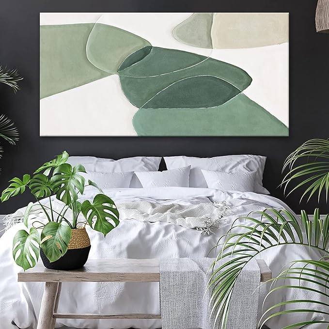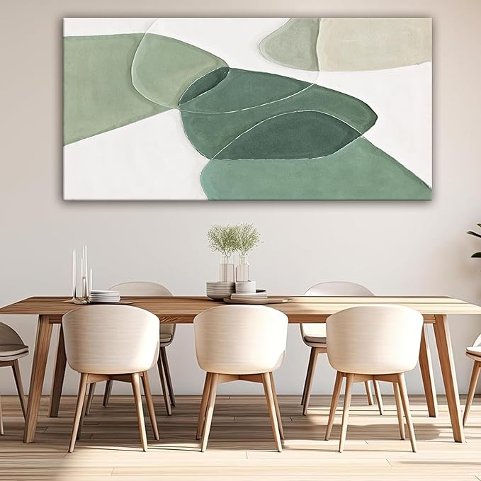 QSQ Modern Wall Art Large Green And White Geometric Color Block Line Wall Painting Artwork Canvas Simple Picture Textured Artwork For Living Room Bedroom Office Home Decor 29"X 58"