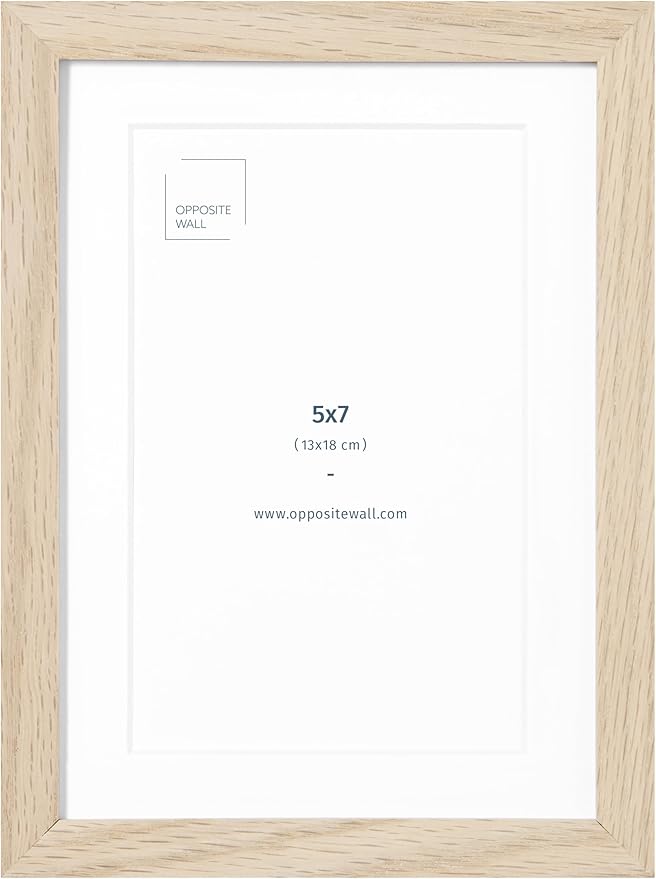 Opposite Wall - 5x7 in - Natural Solid Oak Wood Picture Frames with Mat - Wall Hanging & Tabletop Photo Frame - Pictures Display 4x6 with Mat, 5x7 without - Office, Gallery & Home Decor