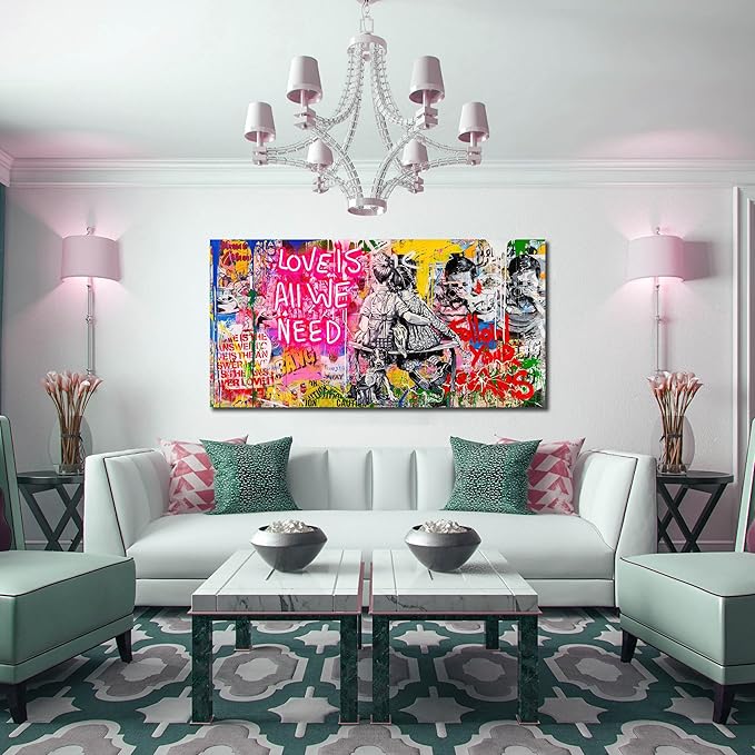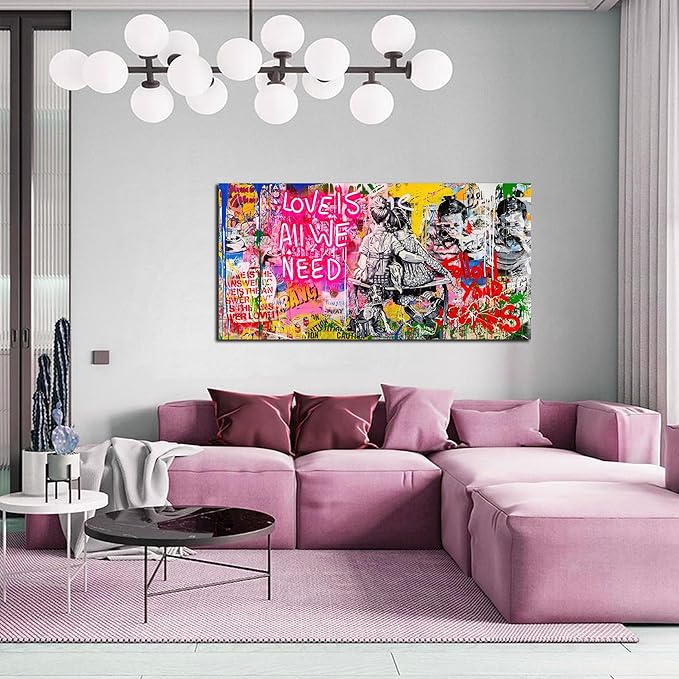 Colorful Banksy Wall Art for Living Room - Graffiti Posters for Teen Girls Room Ready to Hang Size 24" x 48"