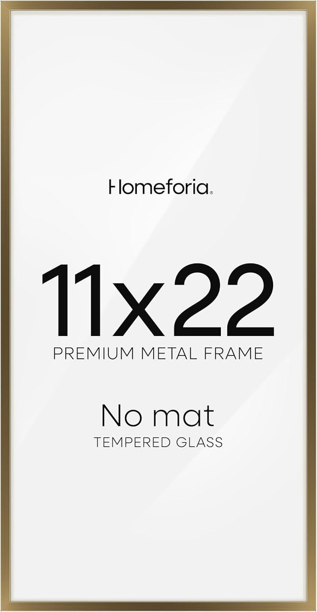 Homeforia 11x22 Bronze Newspaper Frame, High End Metal 11 x 22 Picture Frame without Mat, 22x11 Thin Bronze Poster Frames for Wall, 11by22 inch Display Photo Frames, Tempered Glass, Wall Kit, Set of 1