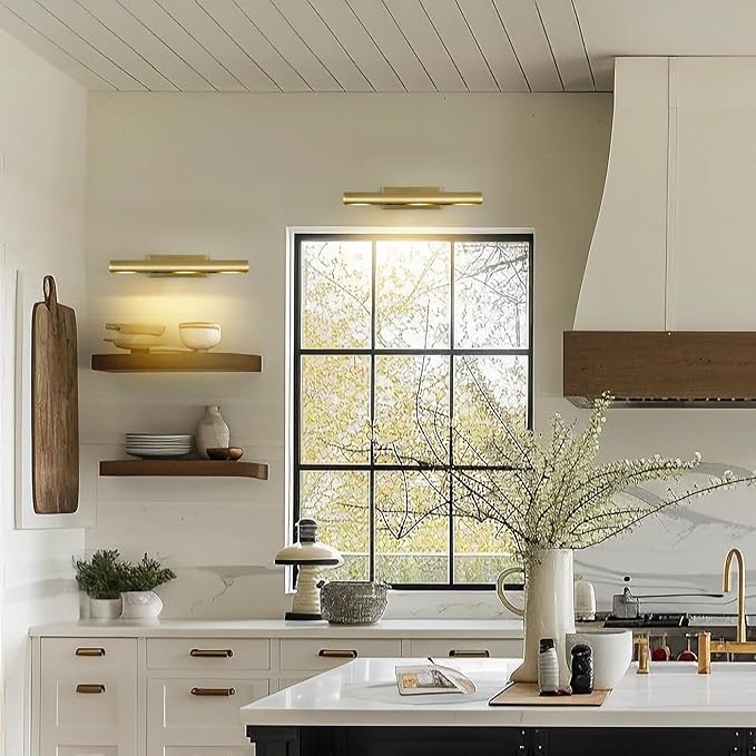 Picture Light, 18inch Brass Picture Lights for Wall,Hardwired Brushed Gold Picture Lights,270° Rotatable Wall Lights for Pictures, 3-Light Picture Frame Light for Painting Display Artwork Portrait