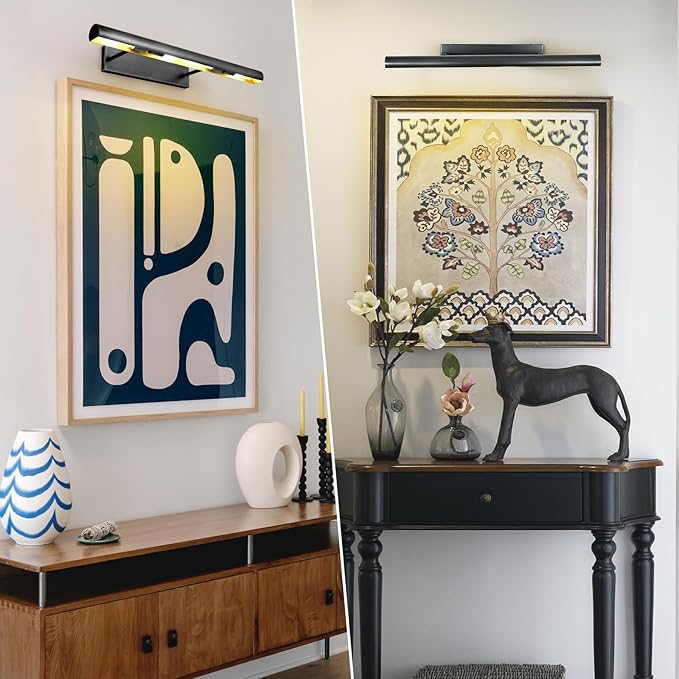 Black Picture Lights, 30inch Hardwired Picture Light for Wall, Dimmable Gallery Wall Lights, Rotatable Linear Picture Frame Light, Art Light for Wall Painting Display Artwork Portrait