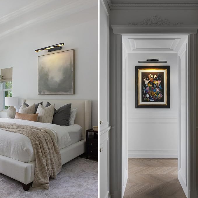 Black Picture Lights, 24inch Hardwired Picture Light for Wall, Art Light for Wall, Rotatable Wall Lights Over Picture, Frame Lights for Painting Display Artwork Portrait