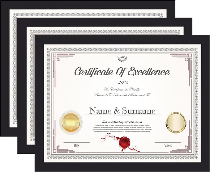 KTKDE 8.5x11 Picture Frame Black Certificate Document Frame 3 Pack Diploma Frames, Poster and Photo, Horizontal and Vertical Formats for Wall Hanging or Tabletop with Shatter Resistant Plexiglass