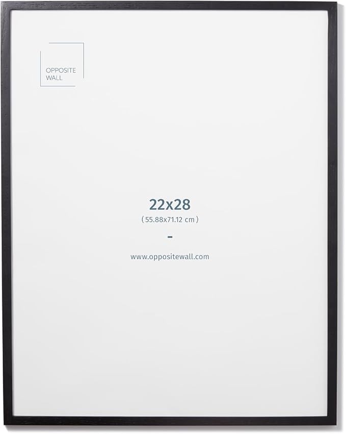 Opposite Wall - 22x28 in - Black Solid Oak Wood Picture Frame - Lightweight, Versatile & Shatterproof - Wall Hanging Poster or Photo Frame - Wall Decor for Office, Gallery & Home