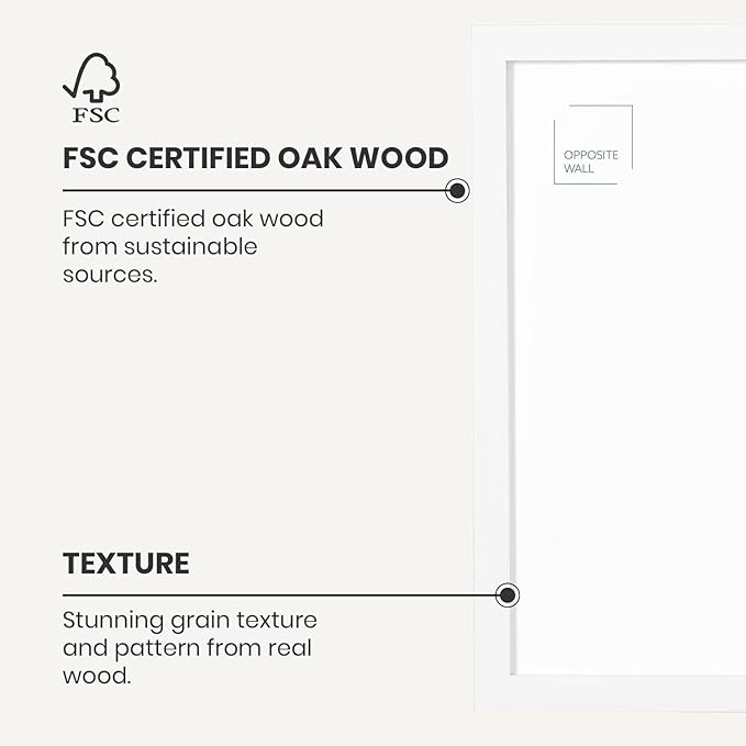 Opposite Wall - 14x18 in - White Solid Oak Wood Picture Frame - Lightweight, Versatile & Shatterproof - Wall Hanging Poster or Photo Frame - Wall Decor for Office, Gallery & Home