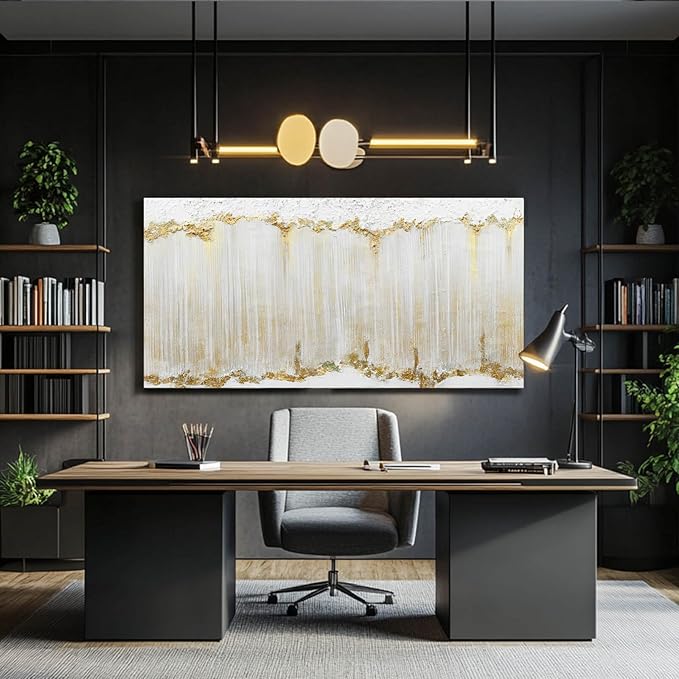WINKAILIN White and Gold Canvas Wall Art Modern Abstract Wall Decor for Living Room Gold Line Office Decor 24"x 48" Textured Wall Prints Ready to Hang