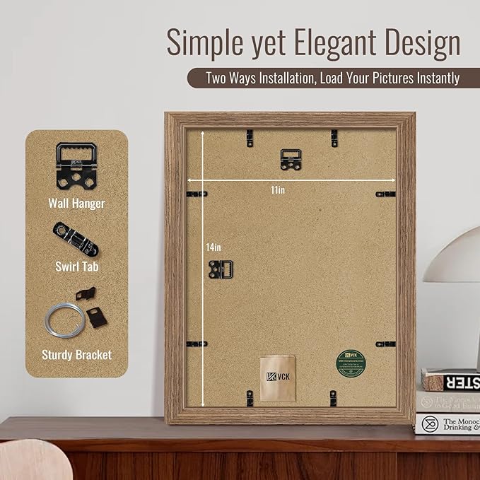 VCK 11x14 Picture Frame Set of 4 - Walnut, Gallery-Quality Wood Poster Frames, 1.1-Inch Wide Border, Polished Plexiglass, Vertical or Horizontal Wall Display for Photo/Art/Prints, Walnut