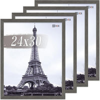 VCK 24x30 Poster Frame Set of 4 - Grey, Gallery-Quality Wood Picture Frames, 1.1-Inch Wide Border, Polished Plexiglass, Vertical or Horizontal Wall Display for Photo/Art/Prints, Grey