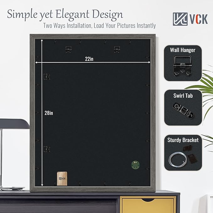 VCK 22x28 Poster Frame Set of 4 - Grey, Gallery-Quality Wood Picture Frames, 1.1-Inch Wide Border, Polished Plexiglass, Vertical or Horizontal Wall Display for Photo/Art/Prints, Grey