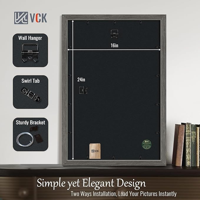 VCK 16x24 Poster Frame Set of 4 - Grey, Gallery-Quality Wood Picture Frames, 1.1-Inch Wide Border, Polished Plexiglass, Vertical or Horizontal Wall Display for Photo/Art/Prints, Grey