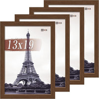 VCK 13x19 Picture Frame Set of 4 - Brown, Gallery-Quality Wood Poster Frames, 1.1-Inch Wide Border, Polished Plexiglass, Vertical or Horizontal Wall Display for Photo/Art/Prints, Brown