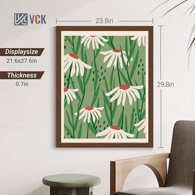 VCK 22x28 Poster Frame Set of 4 - Brown, Gallery-Quality Wood Picture Frames, 1.1-Inch Wide Border, Polished Plexiglass, Vertical or Horizontal Wall Display for Photo/Art/Prints, Brown
