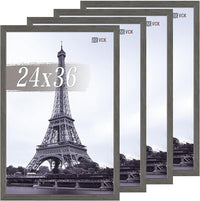 VCK 24x36 Poster Frame Set of 4 - Grey, Gallery-Quality Wood Picture Frames, 1.1-Inch Wide Border, Polished Plexiglass, Vertical or Horizontal Wall Display for Photo/Art/Prints, Grey