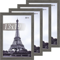 VCK 13x19 Picture Frame Set of 4 - Grey, Gallery-Quality Wood Poster Frames, 1.1-Inch Wide Border, Polished Plexiglass, Vertical or Horizontal Wall Display for Photo/Art/Prints, Grey