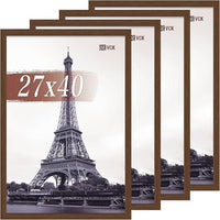VCK 27x40 Picture Frame Set of 4 - Brown, Gallery-Quality Wood Poster Frames, 1.1-Inch Wide Border, Polished Plexiglass, Vertical or Horizontal Wall Display for Photo/Art/Prints, Brown
